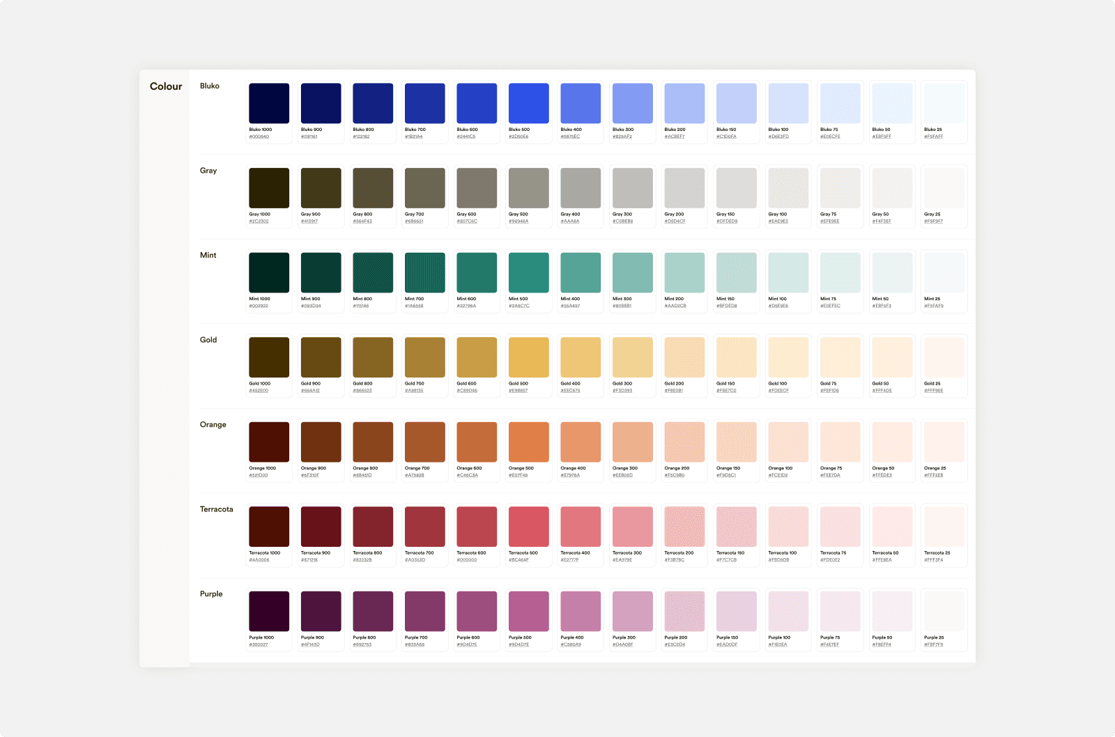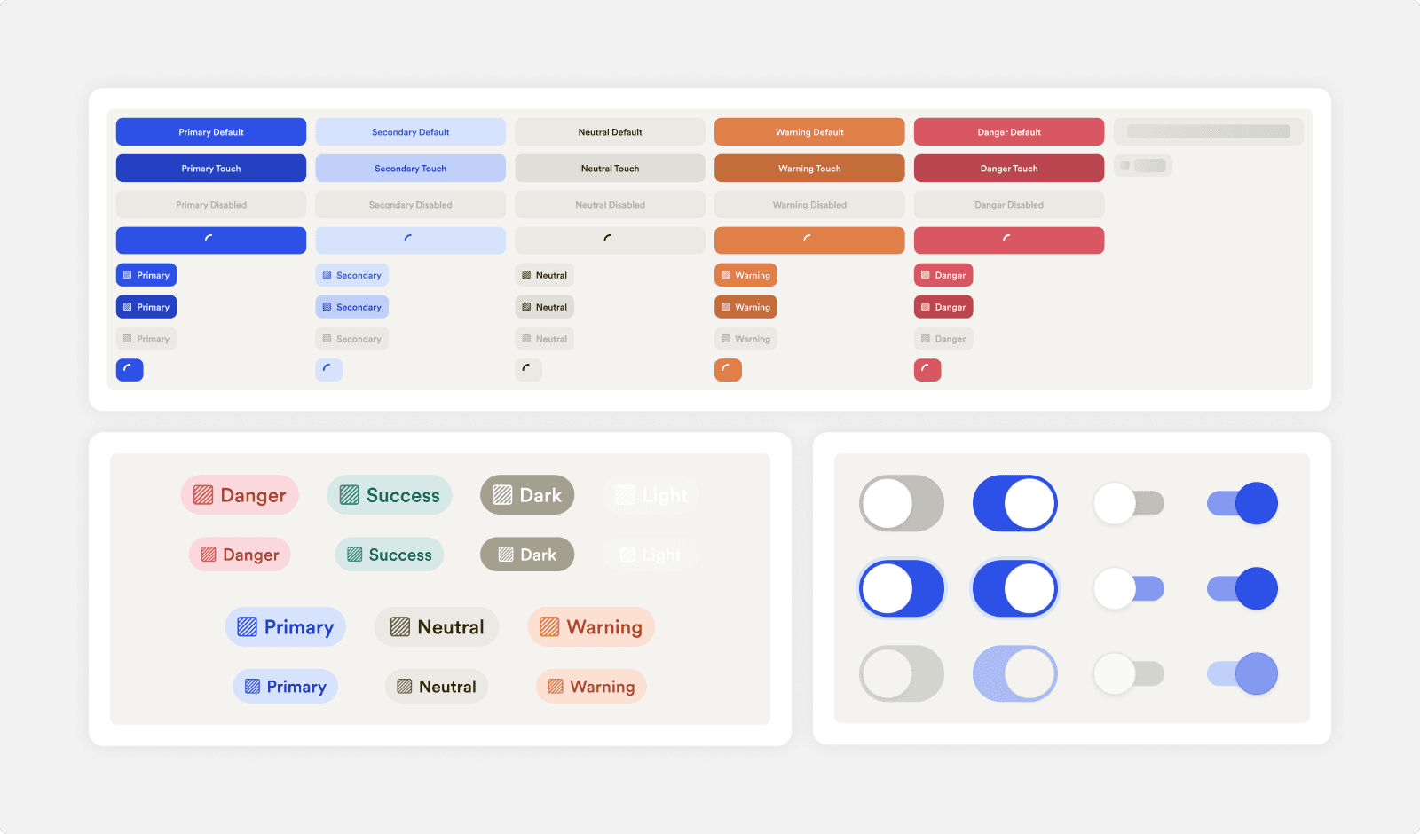 A foundational set of colors, typography, sizing, border-radius, and shadows ensuring consistency across all platforms.