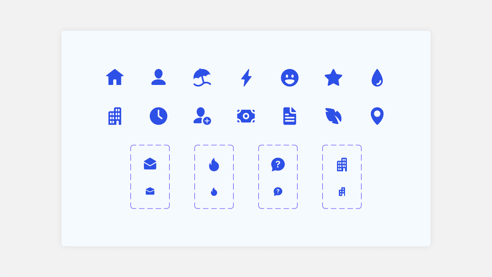 A set of 350+ custom icons in 12px and 16px variants, designed specifically for Luko by previous designers.